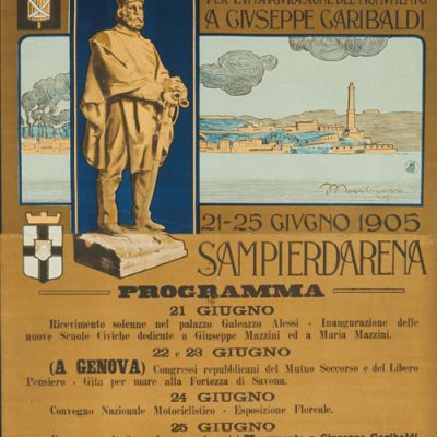 Più di venti manifesti illustrano come le tematiche garibaldine e Garibaldi stesso siano stati utilizzati a fini mediatici e di propaganda. Per lungo tempo, dalla fine dell’Ottocento all’immediato dopoguerra, l’immagine di Garibaldi compare nell’iconografia commemorativa, suggerita e piegata alle varie esigenze ideologiche: da eroe risorgimentale a icona dell’originario movimentismo fascista, da eroe romantico e nazional-popolare a testimone per le elezioni del 1948 del Fronte Democratico Popolare e del Blocco Nazionale.