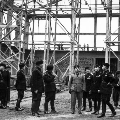 Attraverso foto e materiali documentari del fondo Freddi – conservato presso la Wolfsoniana – e alcune opere della Collezione riguardanti le produzioni cinematografiche negli anni tra le due guerre, la mostra ripercorre la nascita di Cinecittà, costruita alle porte di Roma, per volere di Mussolini, su progetto di Gino Peressutti e inaugurata il 28 aprile 1937. Nella sua veste di deus ex machina della cinematografia nazionale, Luigi Freddi fu il principale artefice della nascita della nuova città del cinema, nei cui stabilimenti di via Tuscolana, realizzati sul modello degli studios hollywoodiani, furono funzionanti ben sedici teatri di posa. Nominato da Mussolini nel settembre del 1934 direttore generale per la cinematografia, presidente dal 1940 di Cinecittà e della Cines e, dal 1941, direttore dell’ENIC (Ente Nazionale Industrie Cinematografiche), Freddi, oltre a intervenire in prima persona nell’ideazione e realizzazione di alcuni dei più importanti film italiani del periodo, mantenne una fitta rete di relazioni con i principali protagonisti del cinema internazionale. I suoi rapporti con le più celebri stelle del firmamento cinematografico rimasero intensi pure nel dopoguerra, nonostante il suo allontanamento dalle cariche istituzionali. Freddi – trasferitosi dopo il 25 luglio 1943 a Venezia, dove la Repubblica Sociale tentò di ridare vita a Cinecittà – ebbe comunque il merito di salvare il patrimonio tecnico trasferito sulla laguna, impedendo che prendesse la via della Germania. Tra la fine degli anni Quaranta e i primi Cinquanta continuò, in ambito privato, la sua attività di produttore. Curata da Matteo Fochessati e Gianni Franzone, la mostra è organizzata in più sezioni. La prima presenta alcune foto di Freddi e di Cinecittà, con immagini del cantiere e dell’inaugurazione avvenuta alla presenza di Mussolini.